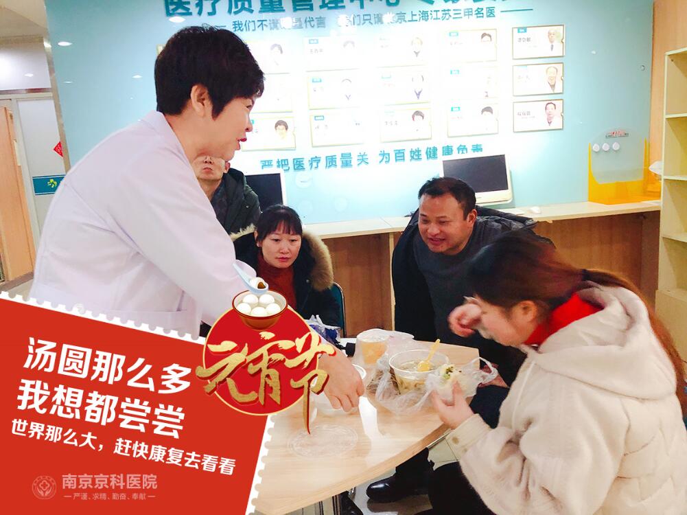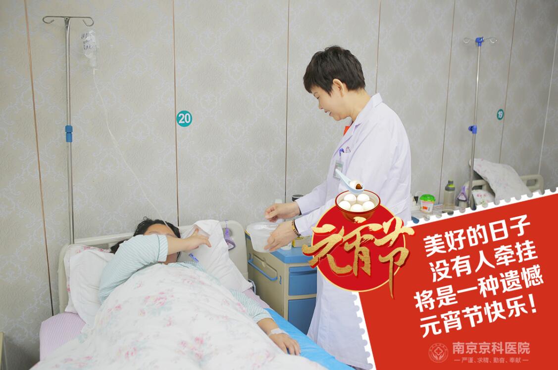 大家都沉浸在节日的欢乐当中,有的三五结伴猜灯谜,有的烧水,煮汤圆。“元宵节快乐!祝愿您早日康复,早日出院,也祝您的生活甜蜜,全家幸福!”元宵佳节,医院护理部蔡主任和护士将一碗碗热气腾腾的汤圆送到患者手中,并送上了自己的祝福。一碗汤圆,让原本安静的病房顿时热闹起来,多了更多的欢声和笑语。汤圆,团圆,医患一家亲,小小的汤圆甜到大家心里去,也让大家感受到节日的温暖。